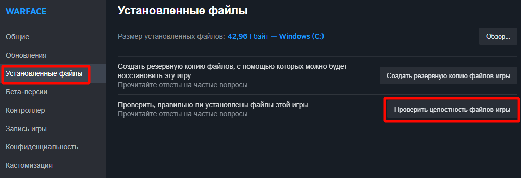 - Перейдите на вкладку "Установленные файлы" и нажмите на кнопку "Проверить целостность файлов игры".