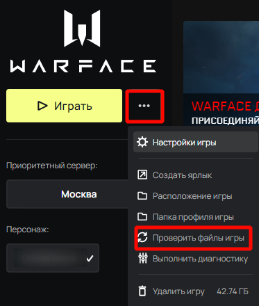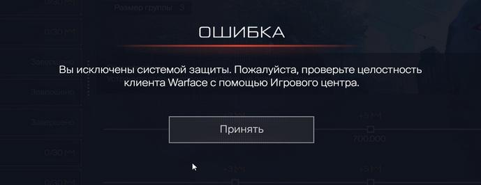 Чтобы избежать системных ошибок, автоматическая система защиты прерывает текущую сессию, рекомендуя вам исправить поврежденные компоненты Warface с помощью лаунчера.